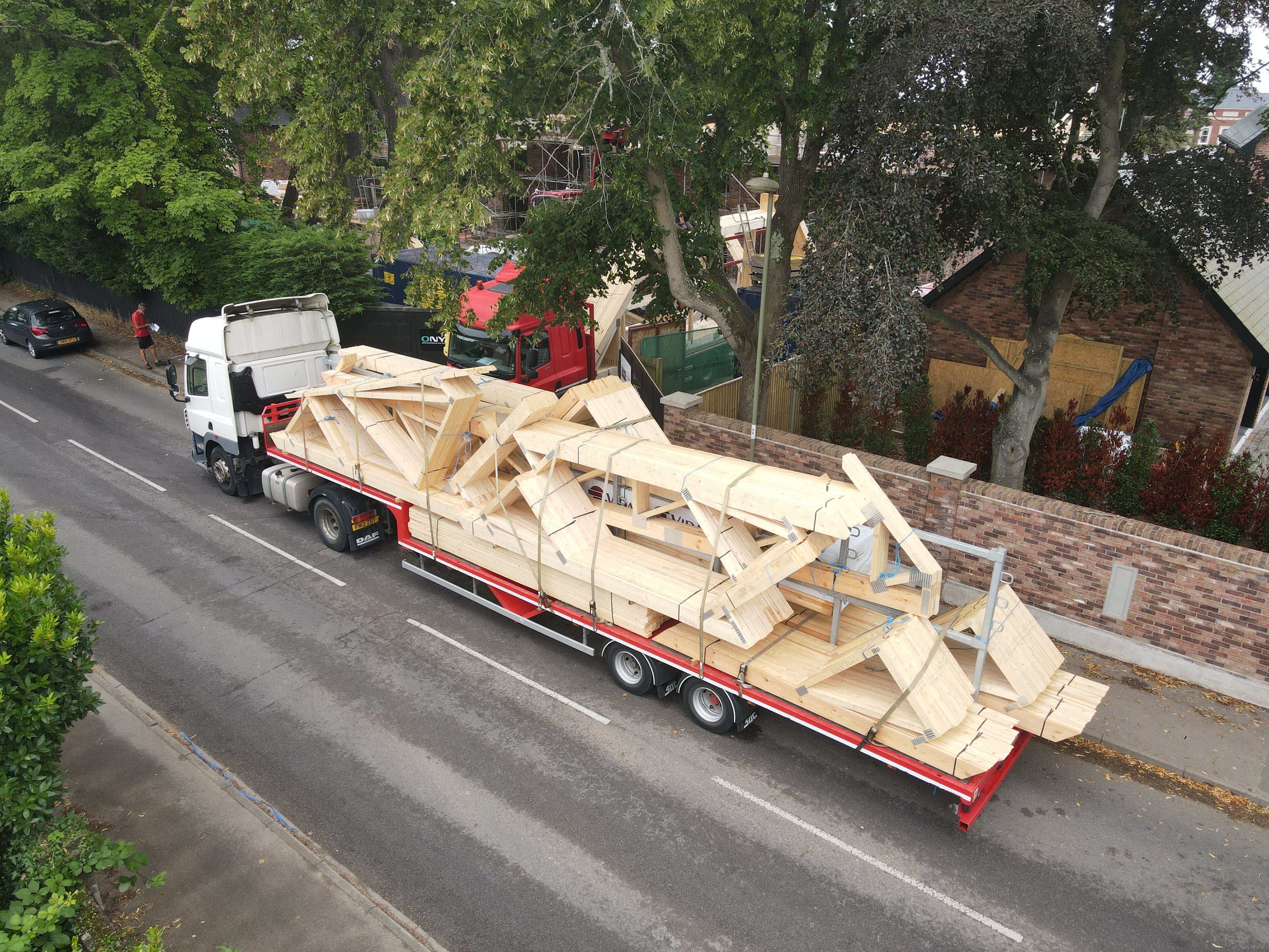 We were approached to design, manufacture and supply attic trusses to construct three executive homes in Southampton. We think you'll agree that this area was fairly special, with enormous manor houses scattered left right and centre. After the trusses had been designed, we were asked to also supply Posi-Joists, which of course we were happy to do. Below you'll see a few images from the delivery, including the gigantic attic trusses.