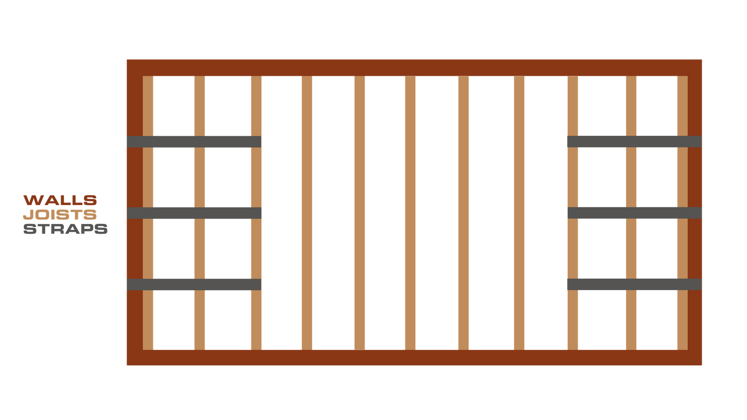 You'll need restraint straps every 2 metres along walls running parallel to the joists. Use the this image as a guide, or contact us if you need a hand.
